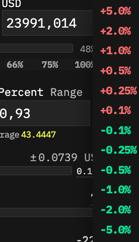 Click on the small arrows next to Percent Range to drop down a menu for quick selection of useful price ranges.